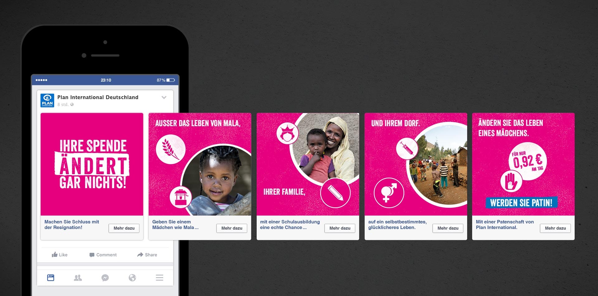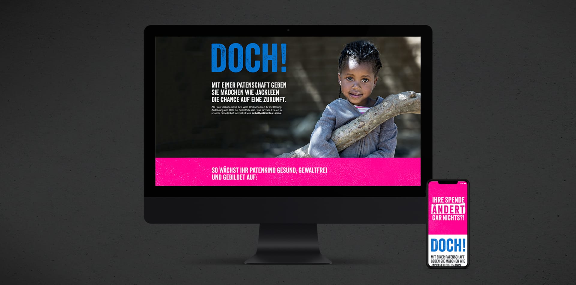 Mit einer provokanten, crossmedialen Kampagne in Zeitschriftenbeilagen, Mailings sowie über verschiedene digitale Kanäle (z. B. E-Mailing, Landingpage, Social Media und Banner) sprechen wir Menschen an, die der Meinung sind, dass eine Spende schon etwas verändern kann. Und zwar das Leben vieler Mädchen!